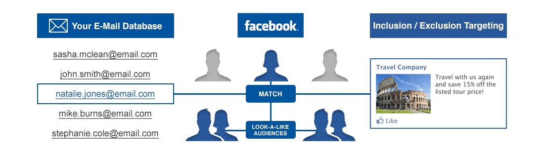 Lo que habría que asegurar es que los usuarios de los leads de los que tengamos el mail, estén utilizando ese correo para loguearse en Facebook. Es habitual que un usuario no utilice el mismo correo para todo. En caso de no ser así, ¿sabes si nos daría algún tipo de fallo?.