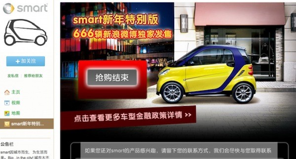 La marca Mercedes definió en la red social china Weibo (es similar a Twitter) una estrategia de negocio para vender sus coches Smart basada en tres puntos clave: