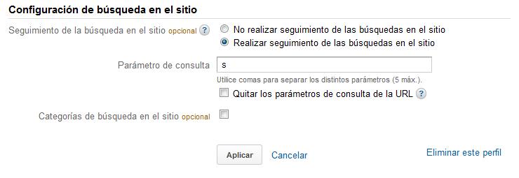 Interesante artículo. Ya había oído de esa posibilidad y me parece interesante. Pero una pregunta que no sé si tiene solución. Si los parámetros generados por el formulario de búsqueda van por POST (en lugar de GET), los parámetros en la URL no son visibles, aunque sí que hay una URL unica para los resultados de búsqueda: Ej. http://www.miweb.com/busqueda.php en ese caso ¿como se podría configurar esta opción en Google Analytics? Si es que se puede… Gracias y un saludo.