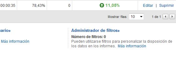 Una vez creado el filtro, los datos con la posición de cada palabra clave pueden tardar unas horas en aparecer, pero se mostrarán tal y como indico en la siguiente imagen, primero la palabra clave y entre paréntesis la posición actual.
