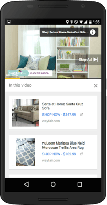 Este servicio va unido a Google Merchant Center, por lo que debe conectarse la campaña de video de adwords para que funcione este nuevo formato:
